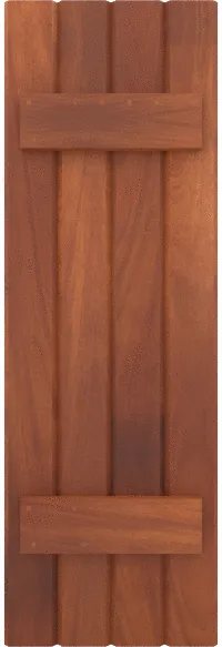 Genuine Mahogany has been the gold standard for fine exterior woodwork for over three centuries. Its rich reddish-brown color deepens and mellows with age, developing a patina that only improves over time. Mahogany is remarkably stable dimensionally, meaning your shutters will resist warping, cupping, and twisting even through seasonal temperature and humidity swings. The wood machines to a glass-smooth finish, holds paint and stain exceptionally well, and its natural oils provide inherent resistance to decay. For homeowners who want the finest material available for their exterior shutters, Mahogany is the uncompromising choice.